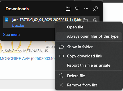 Now, when you download a .bfx file in Edge, it should automatically open in Bluebeam.